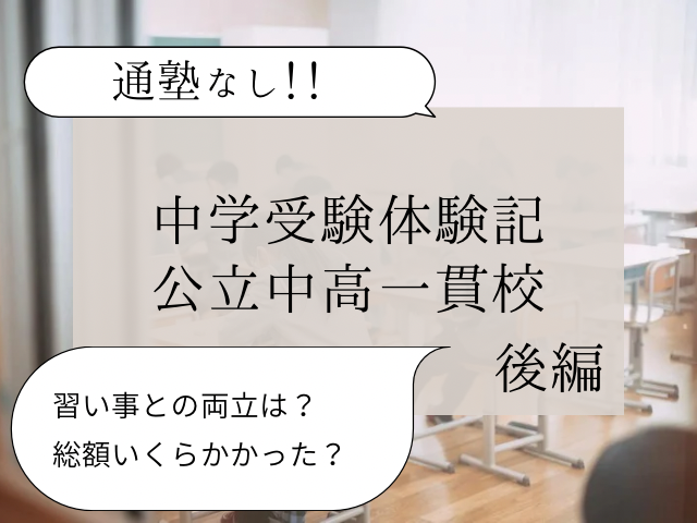 中学受験体験記【公立中高一貫校】通塾なしで合格!習い事との両立は?総額いくらかかった?後編