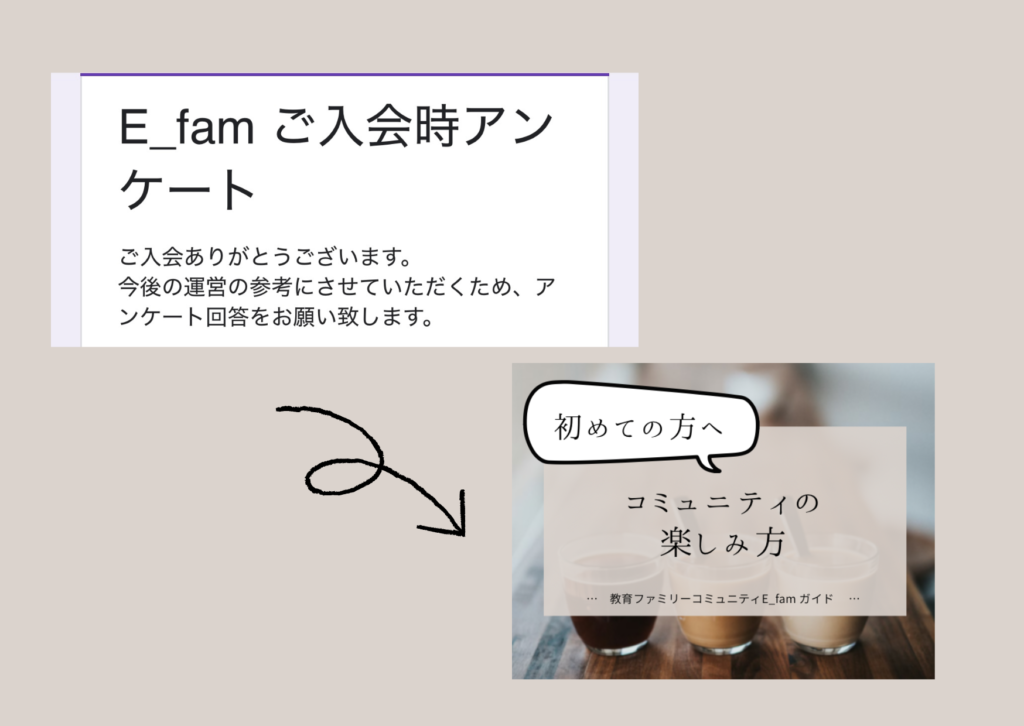 - アンケート回答後、『E_famガイド』記事のご案内がありますので、読んで始めてください!