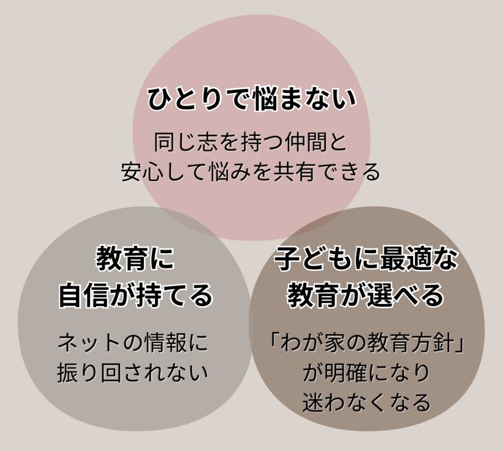 子どもの教育に悩むママやパパが、安心して学び合い、気軽に話し合えるオンラインコミュニティ。